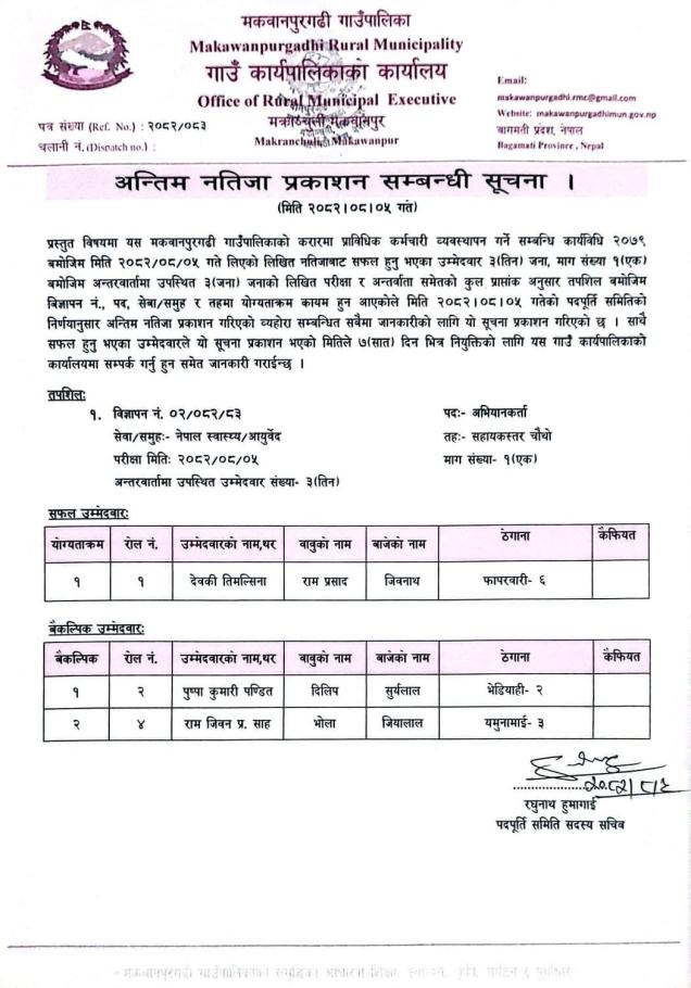 Home » अन्तिम नतिजा प्रकाशन सम्बन्धी सूचना।