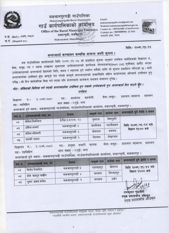 अन्तरवार्ता हुने सम्बन्धि सूचना ...