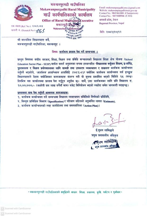 Home » माध्यमिक विद्यालयहरू सबै, मकवानपुरगढी। कार्यक्रम प्रस्ताव पेश गर्ने सम्बन्धनमा।