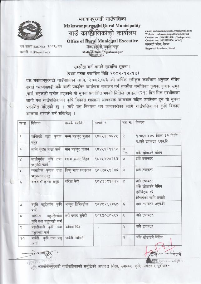सम्झौता गर्न आउने सम्बन्धि सूचना।