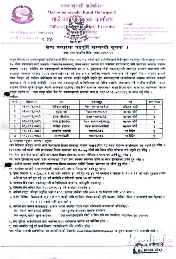 Home » सेवा करारमा पदपूर्ति सम्बन्धी सूचना।