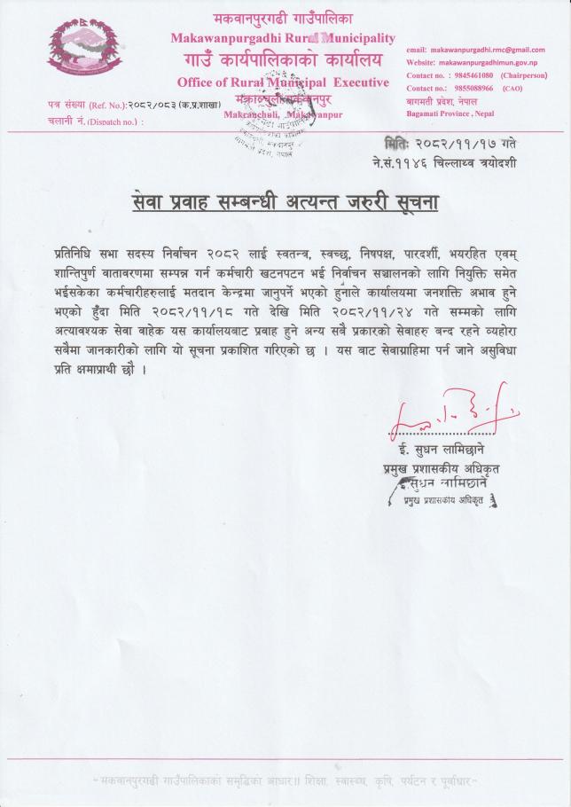 सेवा प्रवाह सम्बन्धी अत्यन्त जरुरी सूचना।